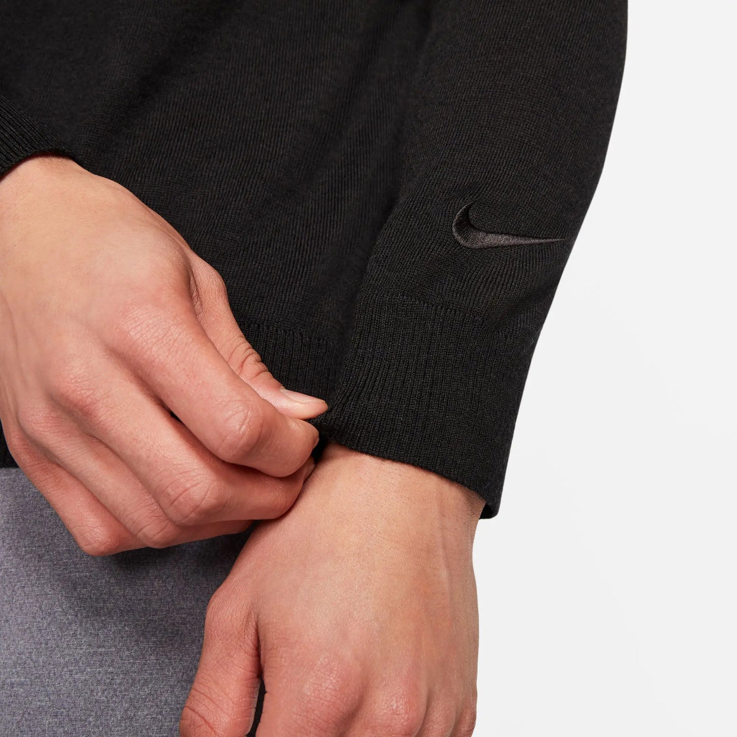 Cozy up in the Tiger Woods Sweater. Crafted from a premium merino wool blend, it's designed to keep you warm and comfortable when the chill sets in. Thoughtful details, like the stretchy mesh stripe down the spine, let you move freely on and off the course.